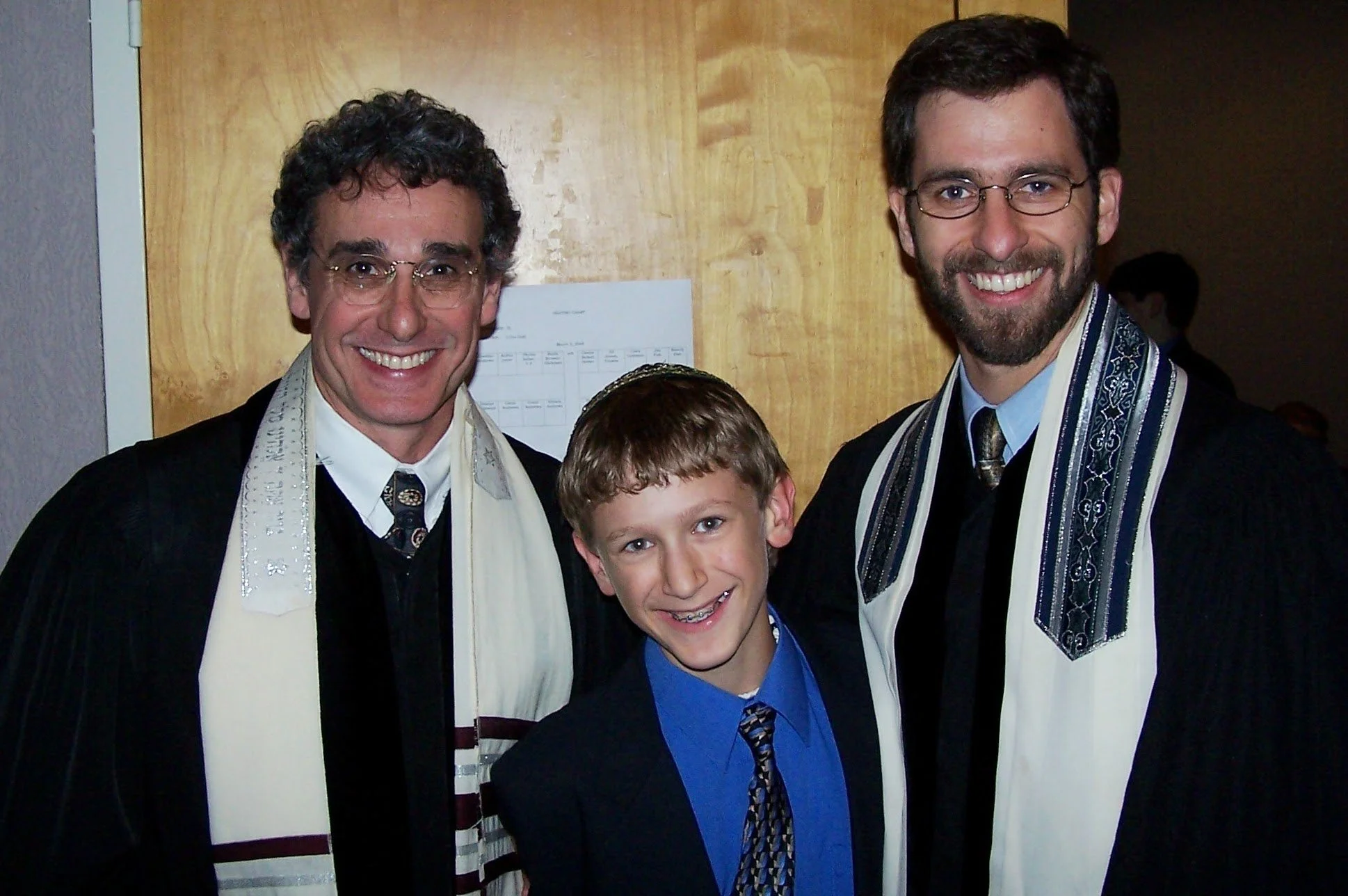 Bubba (13) with his Cantor and Rabbi on the day of his Bar Mitzvah.